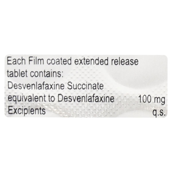 DESRINA 100MG is a potent antidepressant drug. It contains a medicine called desvenlafaxine which is a selective serotonin and norepinephrine reuptake inhibitor (SSNRI). It acts by increasing the levels of certain chemicals (serotonin and norepinephrine) within the brain that elevates your mood and stabilizes mental health. As a result, it makes you feel active and energetic.