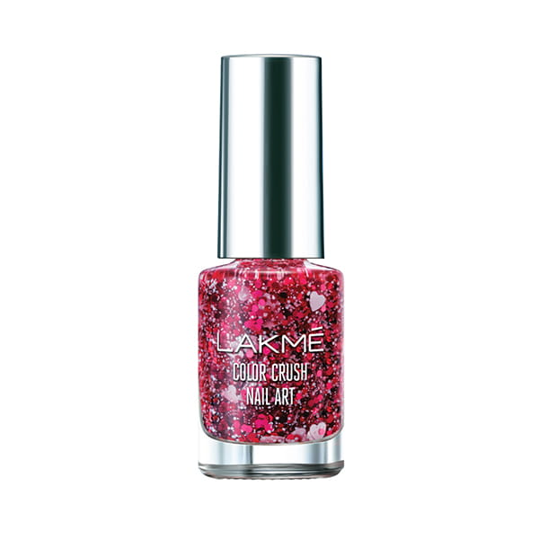 Lakm? Color Crush Nail Art Show-stopping nail art 1. 4 different families – Unicorn, Chrome, Circus, Glitterati 2. 30 new shades and textures 3. Choose from pearlescent Unicorn, metal finish Chrome, glitter-mixed effect with Glitterati and Circus with dazzling micro-particles 3. Shades that highlight each texture vividly Unicorn- Dive into the gleaming watery world and get close to precious shimmering sea shells Chrome- Get Chrome finish with bright colors Mirror like chrome finish to get the bright metal look Circus- Spectacular color, Iridescent Glitter Nail effect Inspired by the glittery world of Circus- dazzling glitters, multi reflection micro particles, bright lively color palette Glitterati- Glitter mixed, Pixelized, Computer Glitch inspired Nail Effect Computer glitches are inspiring imageries that give birth to beautiful chaotic mosaics and blurred streaks. It creates light changing effect on nails. This is mix of random color and shape glitters. Your art on your nails Go solo or mix & match with our new Color Crush Nail Art collection in Chrome, Glitterati, Shimmer and Unicorn. Made for every effect Choose from pearlescent Unicorn, metal finish Chrome, glitter-mixed effect with Glitterati and Shimmer with dazzling micro-particles for any mood. Nails that tell your story Create the trendiest looks with the broadest range of shades and textures. How to apply Style your nails Select two contrasting shades like Unicorn and Glitterati. Apply the Unicorn shade as a basecoat and let it dry completely. Then add a coat of Glitterati on the tip of your nails to create your unique nail art. N/A Apply 2 coats for best result 0 N/A