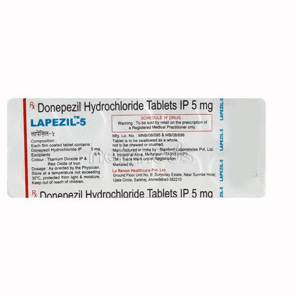 LAPEZIL 5MG TABLET belongs to cholinesterase inhibitor which works by increasing the levels of a chemical messenger (acetylcholine) involved in transmission of nerve signals. This improves memory and thinking. Memory loss in Alzheimer’s disease occurs due to disturbances of signal transmission in the brain.